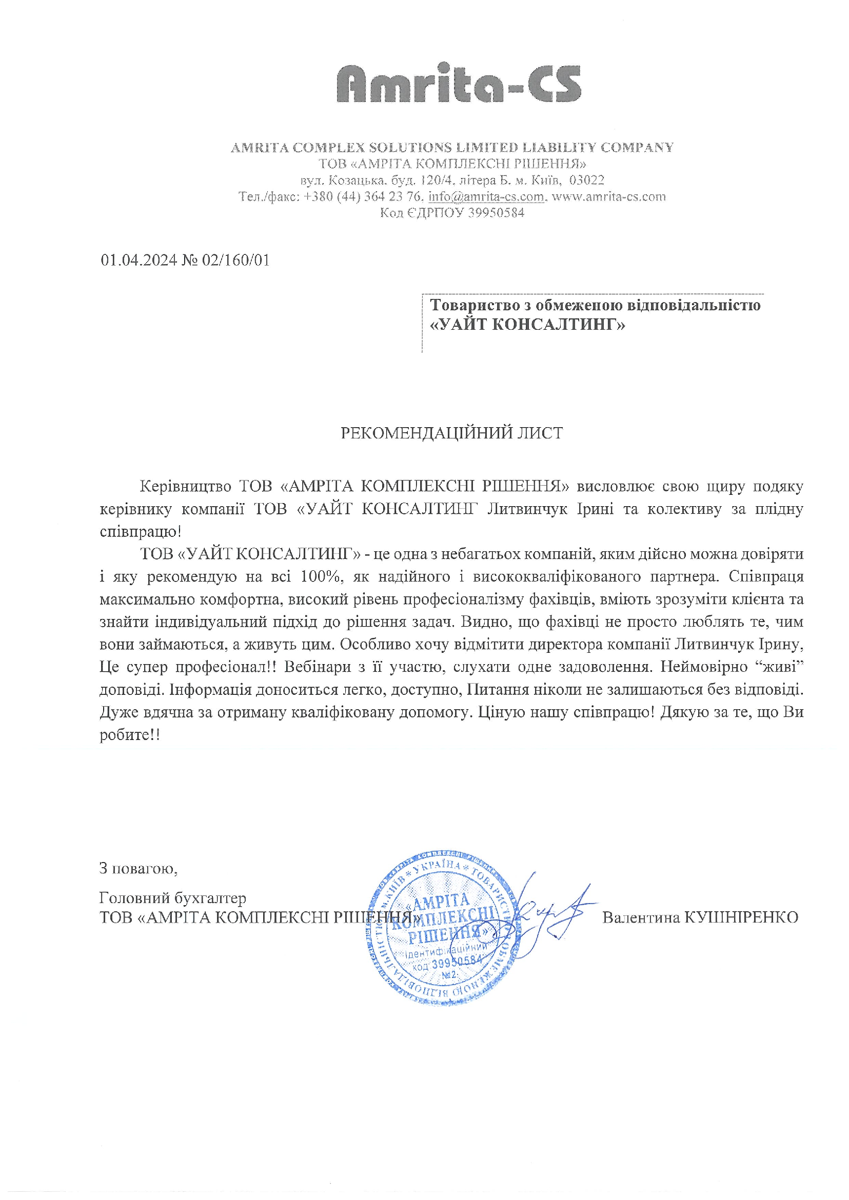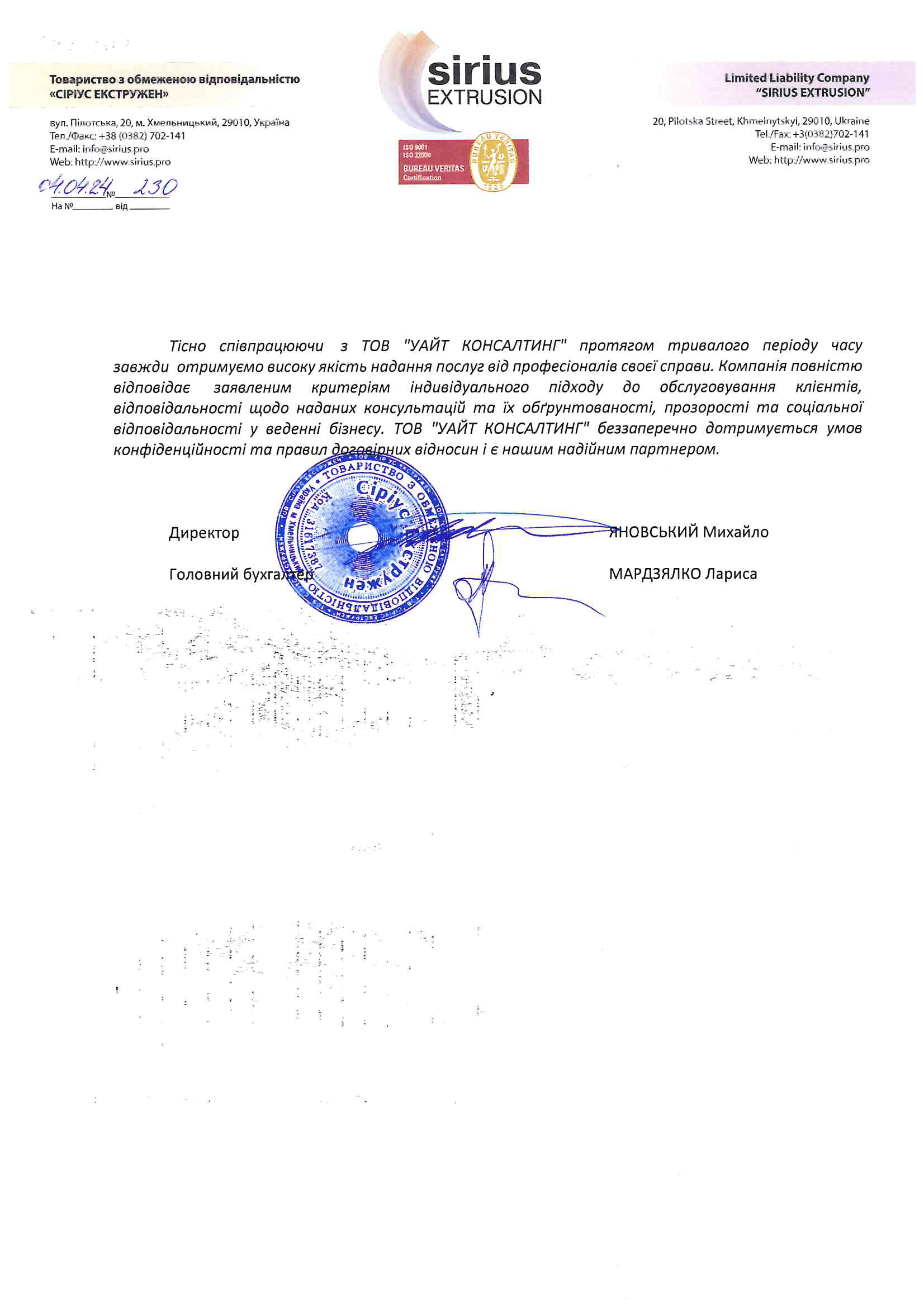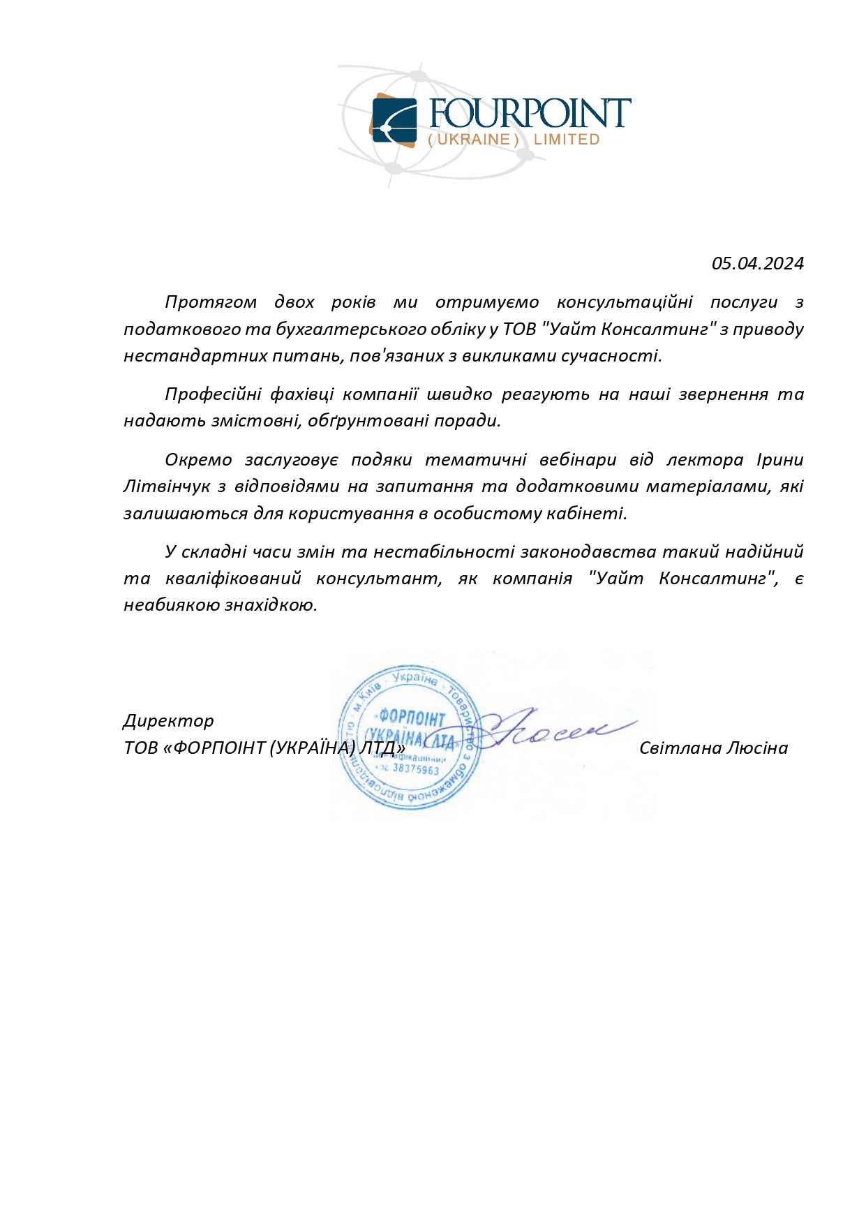 White Consulting Group - соціально відповідальний бізнес. Ми відповідаємо за якість своїх послуг, тому постійно підвищуємо кваліфікацію та страхуємо ризики. Ми відповідаємо перед своїми працівниками, тому платимо виключно білу заробітну плату та гарантуємо професійне навчання. Ми відповідаємо на ринку за наративи, які просуваємо. Тому категорично проти різного роду схем оптимізацій та інших способів несплати податків. Ми як бізнес відповідаємо перед суспільством, тому залучені до благодійних ініціатив.